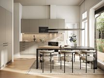Asunnossa on hulppea 3,2 m huonekorkeus ja lattiasta kattoon ulottuvat ikkunat, jotka tekevät kodista todella valoisan. Kolme makuuhuonetta, avara olohuone-keittiötila sekä oma sauna, jossa rentoutua päivän päätteeksi. Keittiö on hyvin varusteltu, ja kylpyhuone on modernin tyylikäs. Asunnoissa vesikiertoinen lattialämmitys, joka lisää asumismukavuutta.