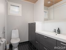 Lattiamateriaali: Laatta. Erillisen WC:n kuvaus: Varustus: Wc istuin, Hana, Allas, Peilikaappi, Allaskaapisto, Lattialämmitys