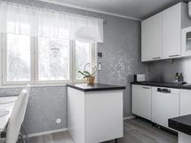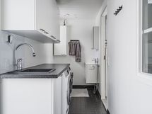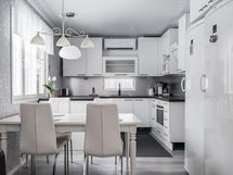 - Keittiön varusteet: Jääkaappi, erillinen pakastin, astianpesukone, liesi, keittiösaareke ja uuni. Liesi: Induktioliesi.