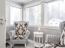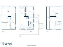 - Pinta-alan peruste: Ei tarkistusmitattu. Pinta-alat saattavat tämän ikäisissä kohteissa (rekisteröity ennen 01.01.1992) poiketa olennaisestikin asuinrakennusten nykyisten mittaustapojen ja standardien (SFS 5139) mukaan laskettavasta asuintilojen pinta-alasta. Pinta-ala voi siis olla edellä mainittua pienempi tai suurempi. Asuinkerros n.75 m2 ja yläkerta n.45 m2, josta osa matalaa tilaa.