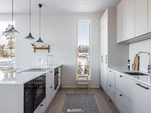 Saarekkeellinen Puustellin avokeittiö integroituine AEG-kodinkoneineen ja kvartsitasoineen tarjoaa erinomaisen käyttömukavuuden ja selkeän, tyylikkään ilmeen. Keittiö, ruokailutila ja olohuone muodostavat yhtenäisen ja viihtyisän oleskelutilan, jossa suuret, lähes lattiasta kattoon ulottuvat ikkunat tuovat runsaasti luonnonvaloa ja maiseman osaksi sisätiloja. Päämakuuhuoneen yhteyteen sijoittuva vaatehuone luo ripauksen luksusta arkeen. Kaksi pienempää makuuhuonetta taipuvat mainiosti lasten makuuhuoneiksi, tai vaikkapa etätyöskentelyyn. Arkielämän toimivuutta sujuvoittaa osaltaan vesipisteellä, toimivilla säilytysratkaisuilla ja kurasyöpöllä varusteltu kodinhoitohuone, josta on suora kulku ulos. Kylpyhuone saunoineen on näyttävä kokonaisuus, jossa peseytyy ja saunoo mielellään! Lämmin autotalli kera tilavan varaston on mitä parhain lisä asumiseen.