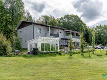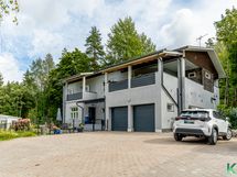 - Oh, 3 mh, k, rt, lasitettu terassi, s, kph, 2 x wc, wc/kh, khh, 3 vh, yläaula, työtila, 2 auton talli, kylmävarasto, 3 parveketta