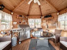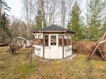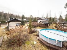 - Oma, 2 450 m² tasainen ja puutarhamainen piha tarjoaa runsaasti tilaa ja monipuolisia mahdollisuuksia. Pihalta löytyy muun muassa autokatos, puuliiteri, varasto, grillikatos, leikkimökki, huvimaja sekä uima-allas.
