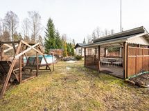 - Tasainen ja viihtyisä tontti, jossa runsaasti pienempiä rakennuksia ja paljon nurmialuetta, istutuksia ja muutamia puita.