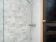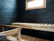 - Kiuas: Sähkökiuas. Tyylikäs tumma sauna, jossa integroitu Bluetooth- äänentoisto.