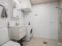 - Pesutilojen varusteet: WC-istuin, suihku, suihkuseinä, pesukoneliitäntä, lattialämmitys, pesuallas, allaskaappi, bidee-suihku ja peilikaappi.