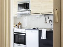 - Liesi: sähköliesi. Kylmäsäilytys: jääkaappi/pakastin. Varustus: liesituuletin, astianpesukone, kiinteät valaisimet. Muutaman vuoden sisällä kivasti päivitetty keittiö.