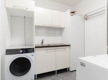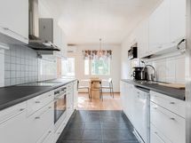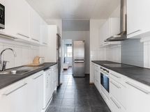 - Keraaminen liesi, Jääkaappipakastin, Kaapisto, Liesituuletin, Astianpesukone, Erillisuuni