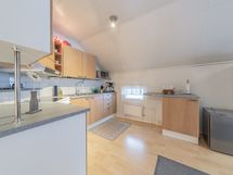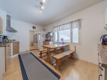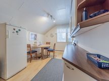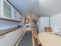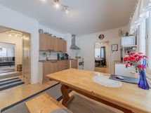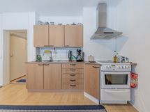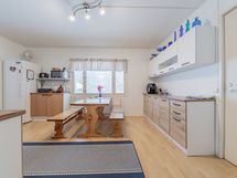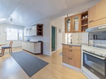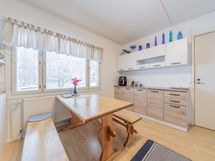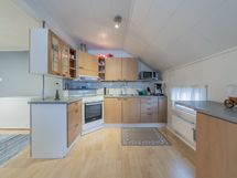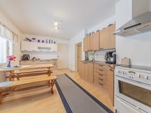 - alakerran keittiö: jääkaappi, pakastin, keraaminen liesi, liesituuletin, seinillä lasikuitutapetti, laminaattilattia; yläkerran keittiö: jääkaappi, keraaminen liesi, liesituuletin, seinillä lasikuitutapetti, laminaattilattia