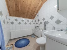 - kellarikerros rakennettu 2003, kylpyhuoneessa laatta, lattialämmitys, 2 x suihku; yläkerran kylpyhuoneessa laatta, allas, allaskaappi, peilikaappi, suihku. WC: jokaisessa kerroksessa wc: yläkerran kylpyhuone: peilikaappi, allas, allaskaappi, wc-istuin, suihku, laatoitus; keskikerroksen wc: laatoitus, peilikaappi, allas, allaskaappi, wc-istuin, koneellinen poisto; kellarikerroksen wc: peilikaappi, allas, allaskaappi, wc-istuin, 1/2väliin laatta, yläosassa lasikuitutapetti, laattalattia