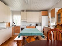 Jääkaappi, kylmiö Festivo Gold, sähköliesi, liesituuletin, leivinuuni nuohottu 2024 viimeksi. Vetää hyvin., astianpesukone.