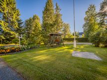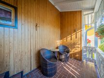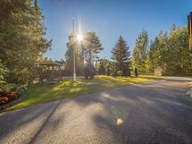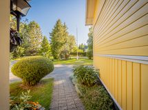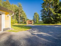 Talon edessä olevalla katetulla terassilla on nautinto istuskella vaikka kahvikupposen äärellä. Iso, osin kuusiaidan suojaama tontti.