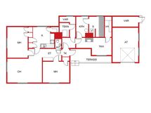 Talossa on kaksi makuuhuonetta, molemmissa kaapistoa, lisäksi takkahuonetta on tarpeen tullen käytetty makuuhuoneena. Takkahuoneessa on avotakka ja takkahuoneen yhteydessä se kaikenkätkevä vaatehuone.