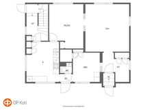 Sauna Yhdistetty löyly/pesuhuone, puukiuas, erillinen wc, peilikaappi, pesukoneliitäntä.