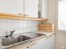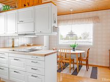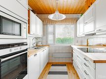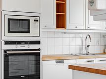 - Varusteet: jääkaappi, pakastin, astianpesukone. Työtaso: puutaso. Liesi: induktioliesi, erillisuuni, liesituuletin suodattimella, mikroaaltouuni