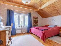 Yläkerrassa sijaitsee kaksi makuuhuonetta, ja koko tilaa yhdistää kaunis lautalattia. Toisesta upean korkeasta makuuhuoneesta on kulku asunnon yhdelle kolmesta terassista. Yläkerrassa lämmönlähteenä toimii ilmalämpöpumppu, myös yksi sähköpatteri löytyy varalle.