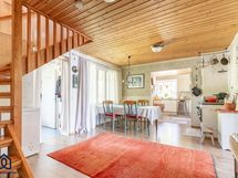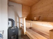 Alakerrasta löytyvät myös kodinhoitohuone, wc, suihku sekä puulämmitteinen sauna. Lisäksi alakerrasta löytyy kesähuone.