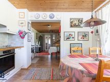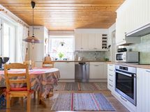 Alakerrassa sijaitsee reilunkokoinen keittiö, joka on remontoitu vuonna 2008 vastaamaan nykypäivän vaatimuksia. Mukavana lisänä alkuperäinen puuhella, jolla pystyt valmistamaan maistuvat ruuat koko perheelle.