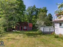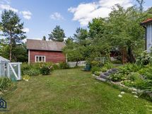 Vanha ulkorakennus toimii säilytystilana ja polttopuusuojana.