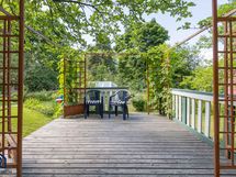 Piha on idylinen puutarhatontti, johon aurinko paistaa koko päivän. Pihan marjapensaat ja omenapuut antavat hyvän sadon asukkaille. Piha on suunniteltu siten, että pystyt nauttimaan olostasi monipuolisesti. Ilta- ja aamuauringolle löytyvät omat terassit. Nurmialuetta pihalle jää mukavasti, jotta lapset pystyvät harrastamaan. Pihasta löytyy myös kaivo puutarhan kasteluun.