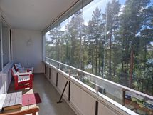- Parvekkeelta, olohuoneesta ja toisesta makuuhuoneesta näkymät länteen jossa metsä ja taaempana meri pilkottaa. Keittiöstä ja toisesta makuuhuoneesta näkymät etelään, jossa metsää ja meri taaempana.