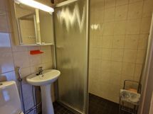 - Pesutilojen kuvaus: Varustus: lavuaari, bidee, kaappi. Varustus: suihkuseinä, pesukoneliitäntä, lattialämmitys, wc-istuin, suihku, peilikaappi, kiinteät valaisimet.