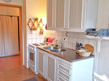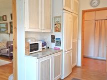 Liesi: sähköliesi. Työtasot: laminaatti. Kylmäsäilytys: jääkaappi/pakastin. Varustus: kiinteät valaisimet.