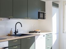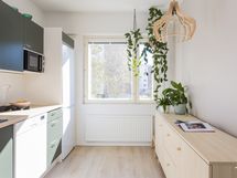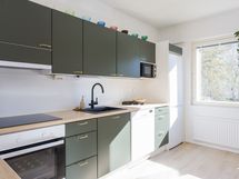 - Jääkaappipakastin, keraaminen liesi, liesituuletin, astianpesukone, kalusteuuni. Lattia laminaatti, seinät maali.