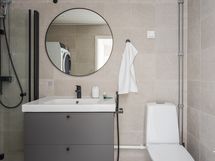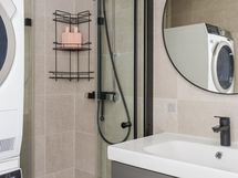 - Pesutilojen kuvaus: Peili, pesuallas, allaslaatikosto, suihku, taittuvat suihkuseinät, wc-istuin, bideesuihku, pesukoneliitäntä. Lattia ja seinät laatta, sähköinen lattialämmitys.