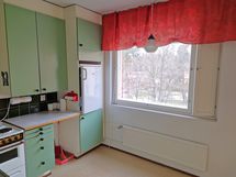 - Liesi: sähköliesi. Työtasot: laminaatti. Kylmäsäilytys: jääkaappi, pakastin.