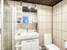 - Sauna, sähkökiuas, kylpyhuone, suihku, suihkuseinä, peilikaappi, allaskaappi, pesukoneliitäntä, lattialämmitys.