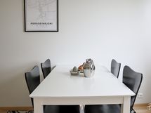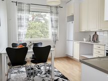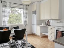 - Jääkaappipakastin (2025), keraaminen liesi (2020). Välitila laatta. Lattia laminaatti, seinät maali.
