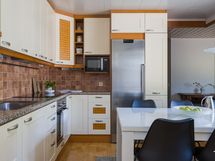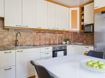 - Liesi: induktio, erillisuuni. Kylmäsäilytys: jääkaappi. Varustus: liesituuletin, astianpesukone, kiinteät valaisimet.