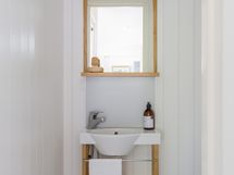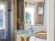 - Varustus: lattialämmitys, suihku. Erillisen WC:n kuvaus: Wc 1:seinät paneloitu, lattia vinyyliä, peili, allas. Wc 2: seinät ja lattia laatta, lattialämmitys, peili, allas.