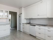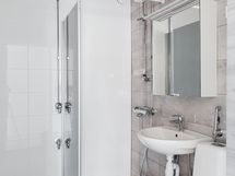 - Varustus: suihkuseinä, pesukoneliitäntä, lattialämmitys, wc-istuin, suihku, peilikaappi, kiinteät valaisimet, kylpyhuonekaapisto.