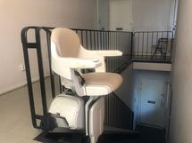 Tuolihissi: Portaikkoon on asennettu asukkaiden liikkumista helpottava tuolihissi.