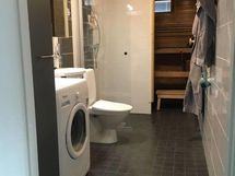 - Suihku, Pesukonevalmius, Peilikaappi, Allaskaappi, Laattalattia, Laattaseinä