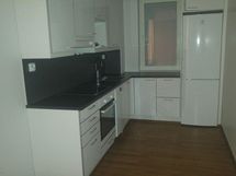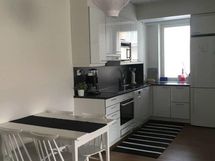 - Laminaattitasot, Astianpesukone, Keraaminen liesi, Jää-pakastinkaappi, Tilaa isolle ruokapöydälle, Liesikupu