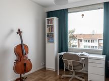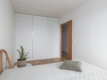 Toisessa makuuhuoneessa liukuovikaapisto.