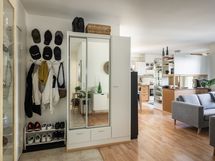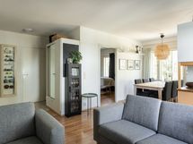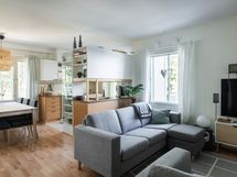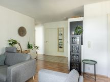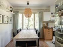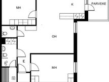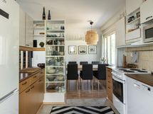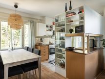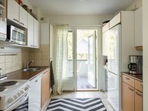 - Liesi: sähköliesi. Työtasot: laminaatti. Kylmäsäilytys: jääkaappi/pakastin, viinikaappi. Varustus: liesituuletin, astianpesukone. Uloskäynti parvekkeelle.