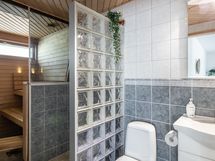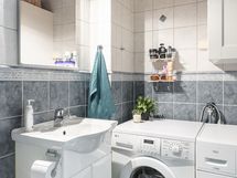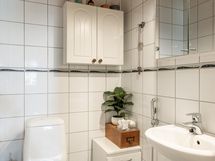 - Pesutilojen kuvaus: Pesuallas, allaskaappi,. Varustus: suihkuseinä, pesukoneliitäntä, lattialämmitys, wc-istuin, suihku, peili, kylpyhuonekaapisto. Erillisen WC:n kuvaus: Wc, pesuallas,. Varustus: peilikaappi, bidee-suihku.