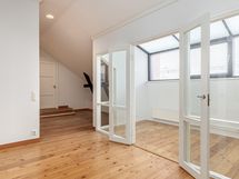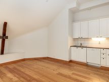 •Teollista tunnelmaa tyylillä: Säilytettyjä alkuperäisiä yksityiskohtia, kuten korkeat huoneet, näkyvät kattopalkit ja suuret ikkunat, jotka päästävät sisään runsaasti luonnonvaloa ja antavat asunnolle ainutlaatuisen luonteen.