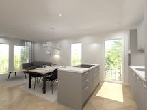 Detta är ett bra tillfälle för din familj att förverkliga ett hem, vars inredningsval och utrustningsnivå du själv kan påverka. Förutom högkvalitativ arkitektonisk design och slipade inredningsdetaljer är bostädernas planlösningar mycket funktionella. Här erbjuds familjelägenheter av hög kvalitet med ett utmärkt läge. Till bostaden hör en solig terrass, där du kan njuta av stämningsfulla sommargrillkvällar samt av svalkande höstar med vänner och med familjen.