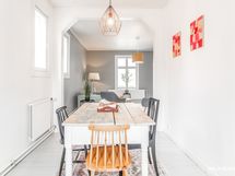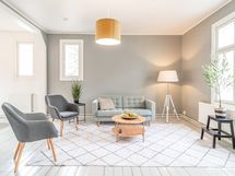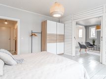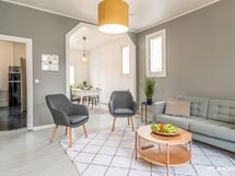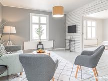 Asunnon keittiö on erittäin tyylikäs ja vanhaa aikaa kunnioittava. Kylpyhuoneessa on kaikki tarpeellinen, kuten suihku, wc-istuin ja pesukoneliitäntä. Makuuhuone on erittäin tilavia, toinen makuuhuone sopii niin makuuhuoneeksi kuin ruokailu-/työhuoneeksi.