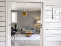 Vardagsrummet har fönster i två olika riktningar.