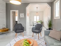 Olohuoneessa ikkunat kahteen eri suuntaan.