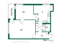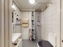 - Suihku/suihkukaappi, peilikaappi, pesukoneliitäntä, lattialämmitys, kiinteät valaisimet
