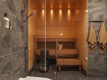 Pesutilojen varusteet: WC-istuin, suihku ja allaskaappi. Erillisten WC:n lukumäärä: 2. Erillisen WC:n varusteet: WC-istuin, suihku ja allaskaappi. Erillisen WC:n kuvaus: Erillisessä wc
