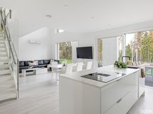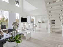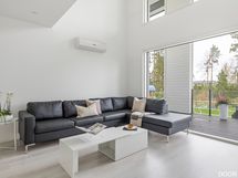 Moderni ja näyttävä koti, jossa kokonaisuus on valmiiksi mietitty.