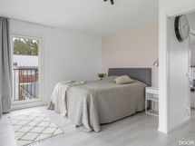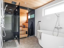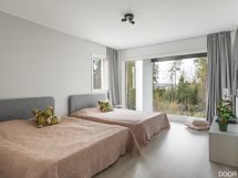 Tilat jakautuvat kahteen kerrokseen luontevasti. Yläkerran makuuhuoneet tarjoavat rauhalliset puitteet perheelle, ja päämakuuhuoneen yhteydessä oleva walk-in-closet tuo arkeen selkeyttä. Alakerrassa oleskelutilat, saunaosasto ja kodinhoitotilat täydentävät toimivan kokonaisuuden. Suora kulku autotalliin lisää arjen helppoutta.